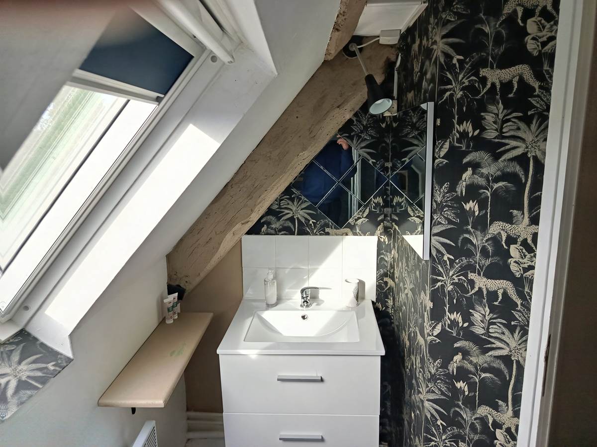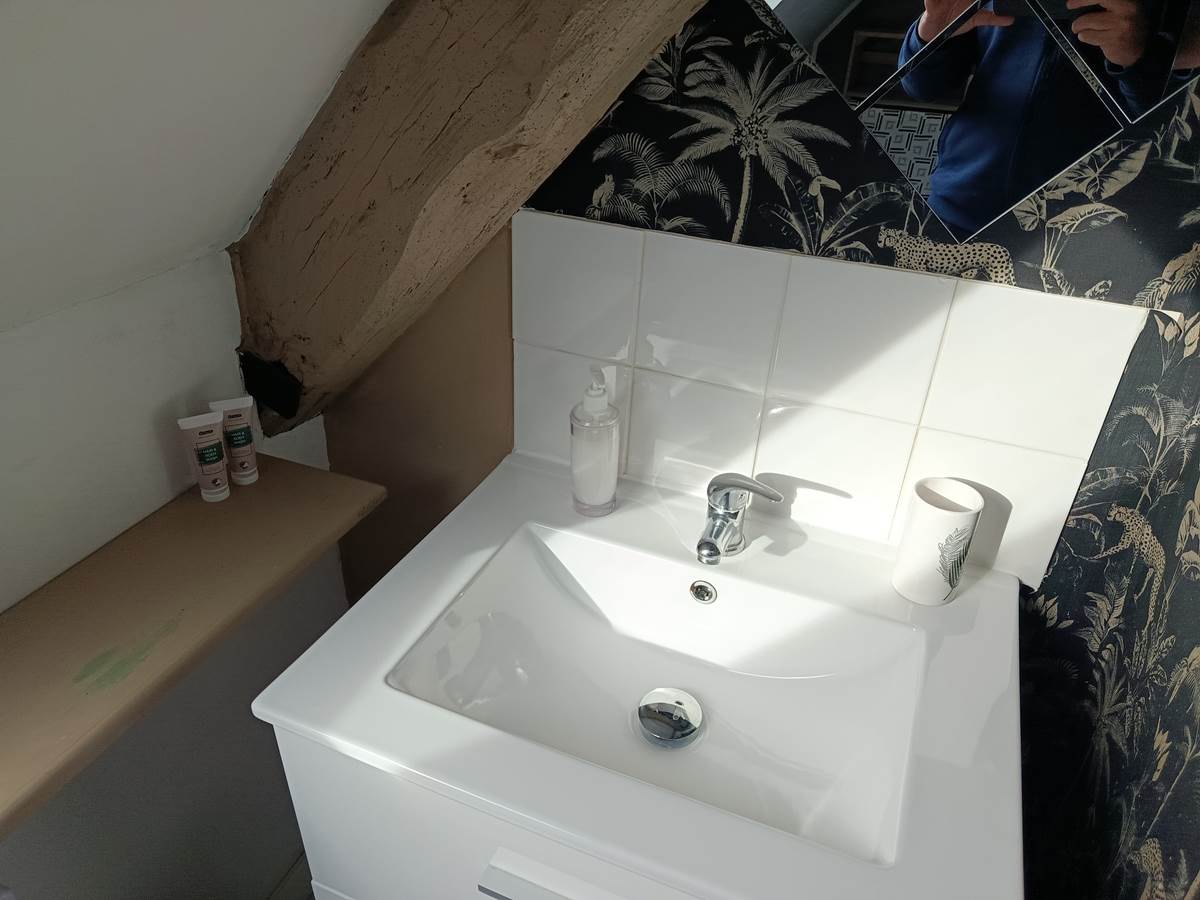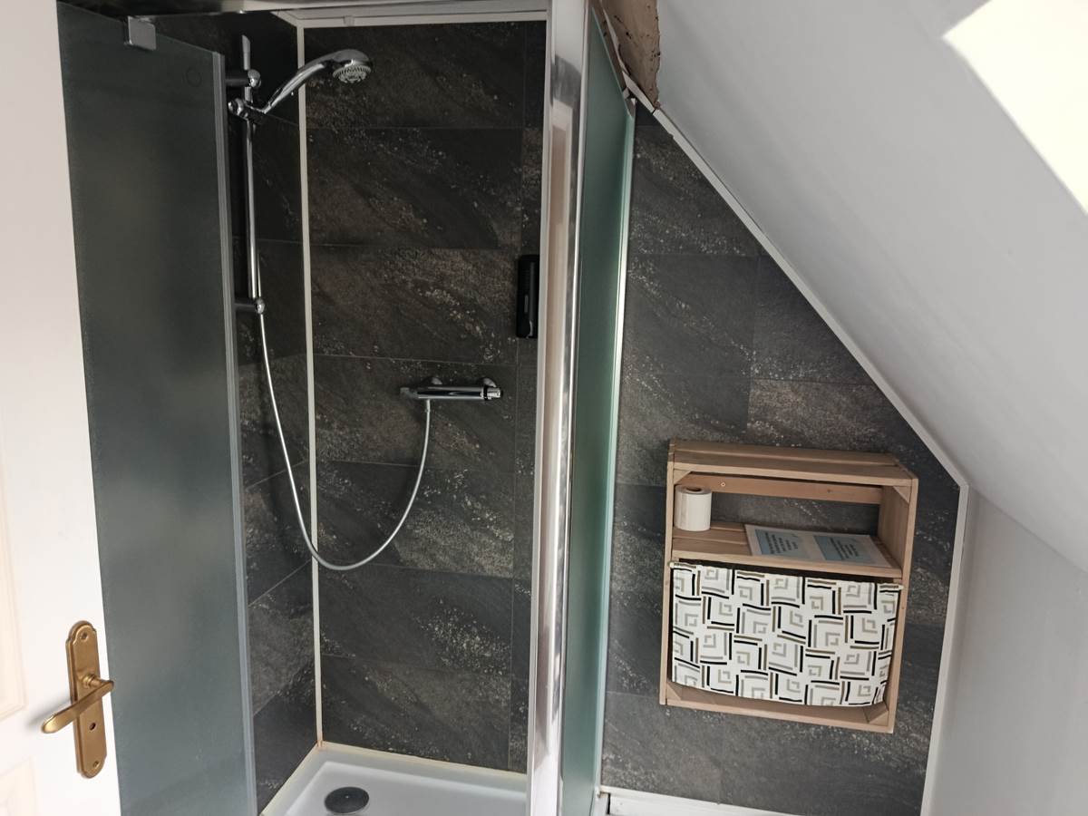 Chambre cocoon avec salle d'eau privative et toilette, une bouilloire est à votre disposition