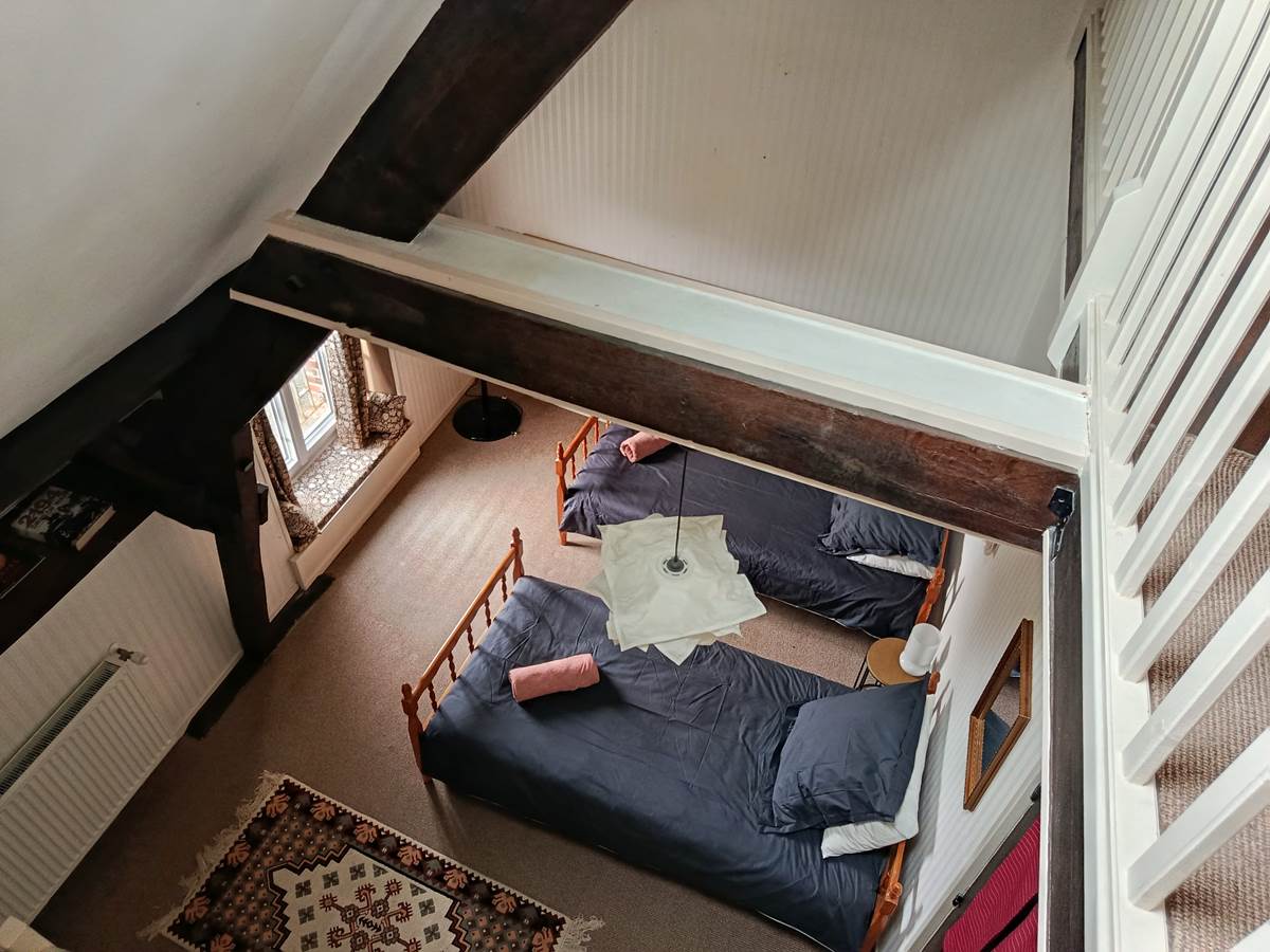C'est une mezzanine, le lit double est à l'étage et les lits simples sont en bas