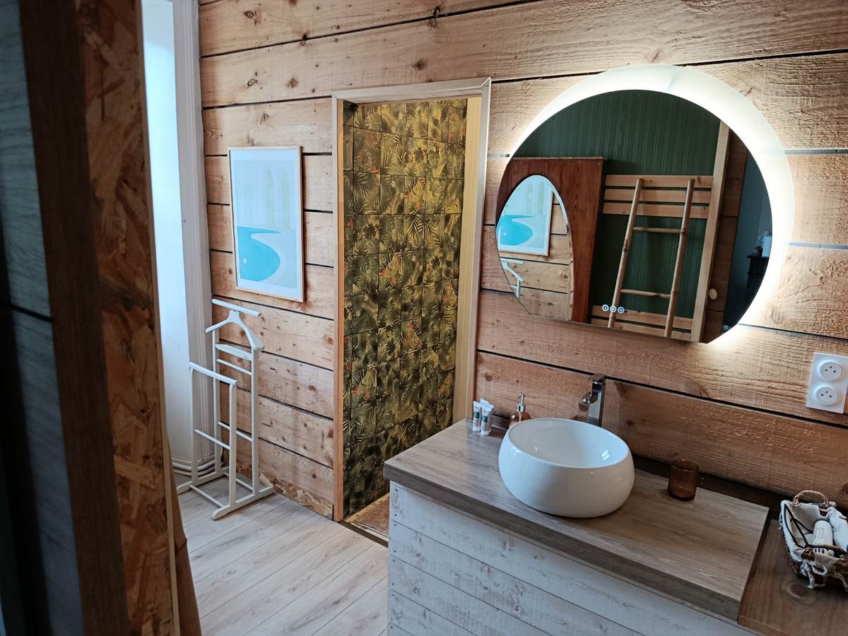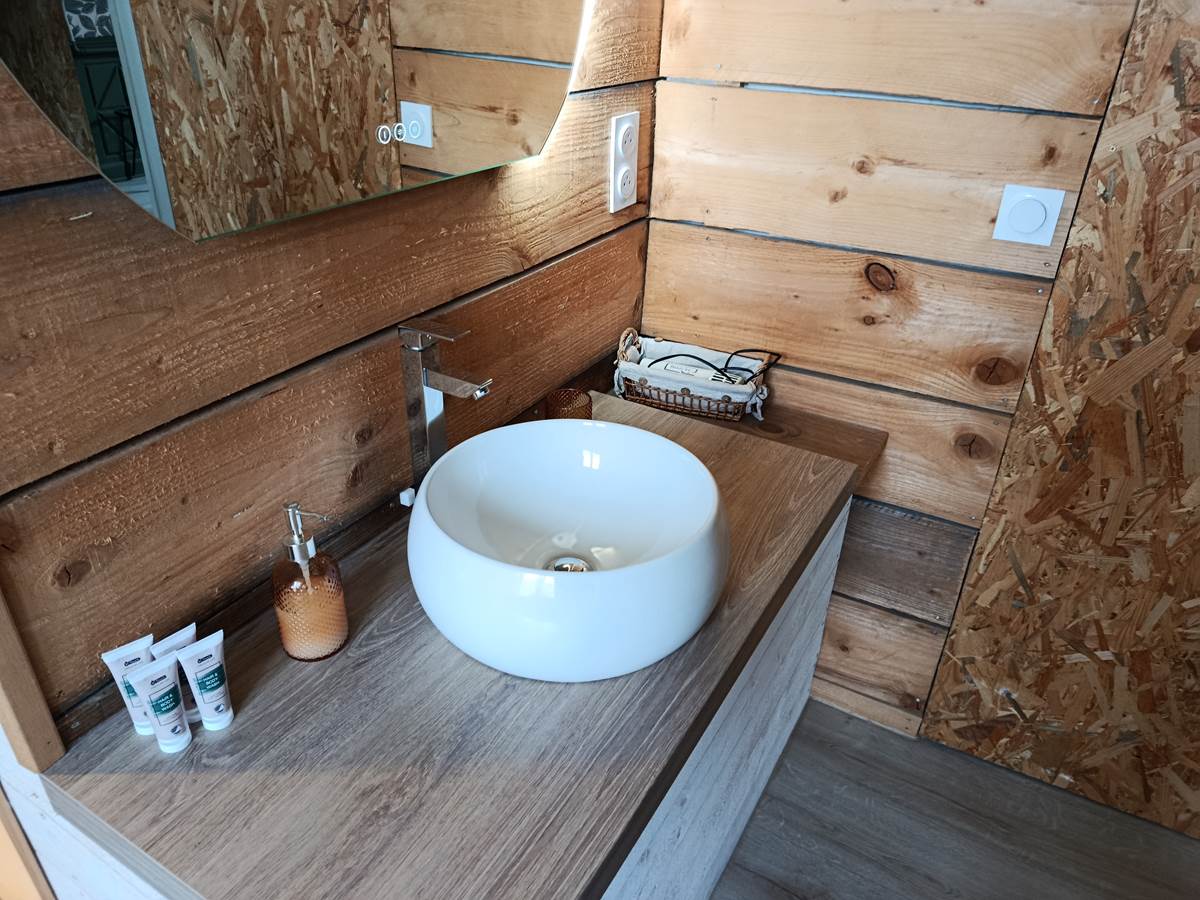 C'est une chambre pour 4 personnes avec 2 lits double avec salle d'eau et toilette